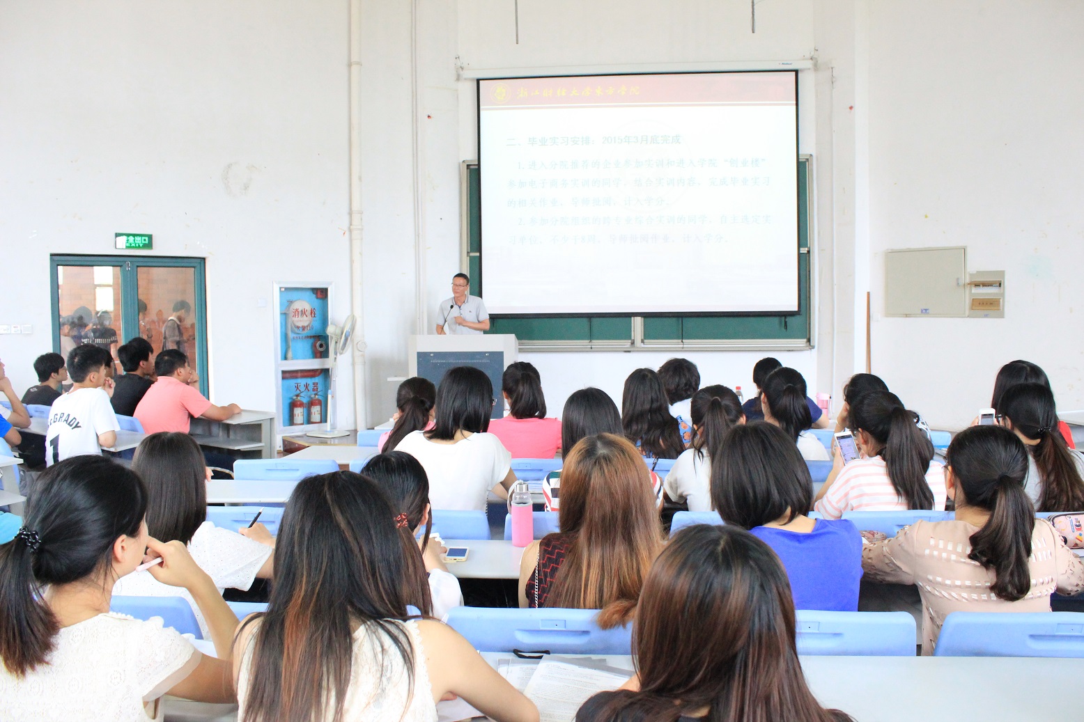 2014年6月10日下午,信息分院部署了2011级毕业生实习实训的相关工作,由团总支书记王普主持,信息分院经理姚建荣、党总支书记成定平、党总支副书记王晓玲、团学工作辅导老师刘与嘉以及信息分院2011级毕业生共同出席。
