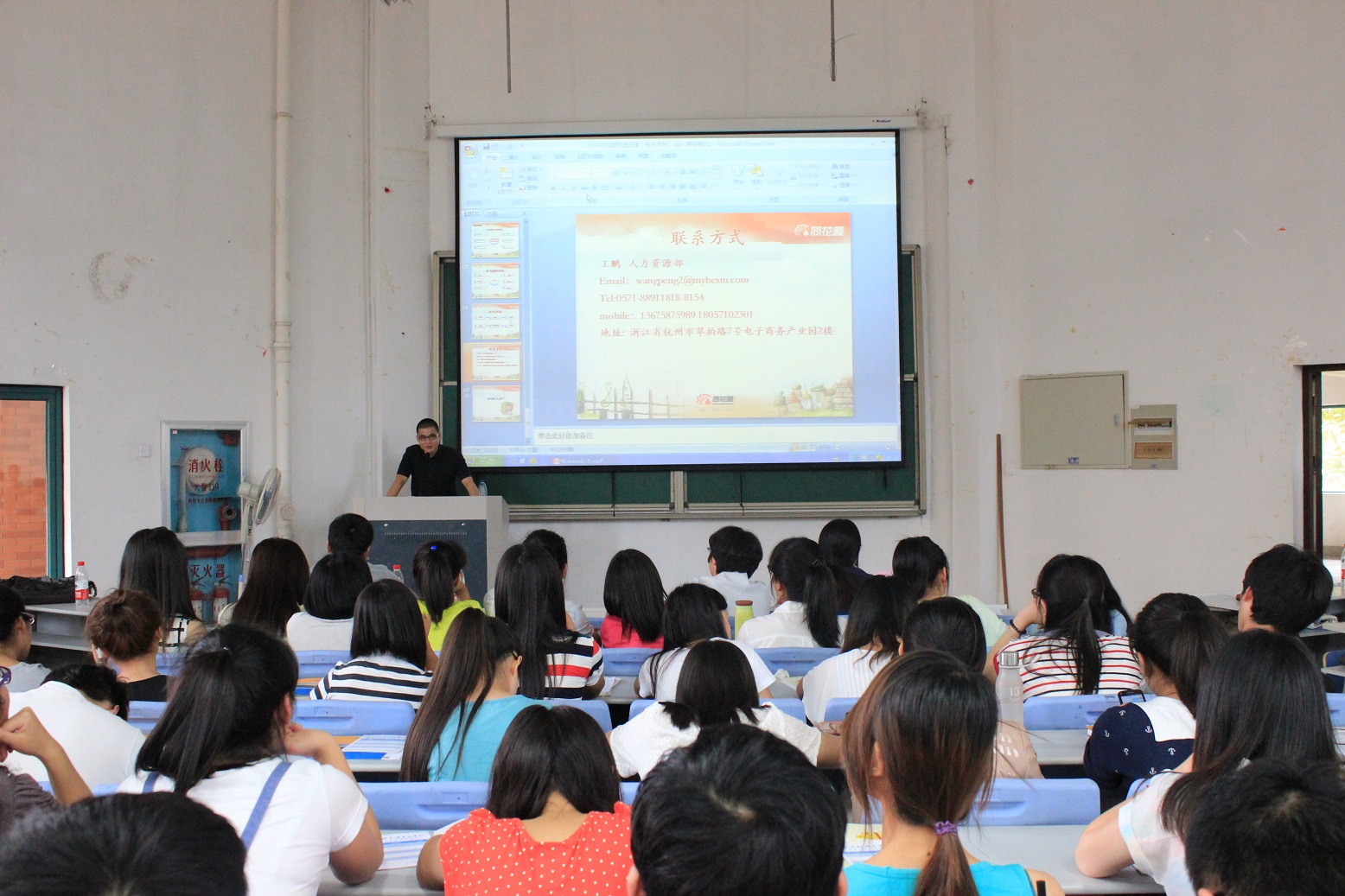 会上,姚经理首先和同学们指明了参与服务外包工作的意义。在当前员工就业形势非常严峻的背景下,如何最大限度的满足社会和用人单位对专业人才的需求,培养创新应用型人才培养模式,提高员工就业竞争力,实现教育与就业的近距离对接,这是信息分院领导班子一直思考的问题。为此,分院坚持“本科标准”和“职业技能”相结合的办学理念,研究社会和用人单位的需求,明确岗位所需要的专业技能,合理调整专业人才培养体系,针对四个年级不同学习阶段,确定专业特色鲜明的人才培养目标,形成了完整的和社会及岗位直接对接的教学体系。姚经理指出,为实施“本科标准”和“职业技能”相结合的教学体系,分院大力开展校企合作,这好比为就业“冲刺”提供“助跑”,既帮助了员工提高就业成功率,更使员工提高了就业质量,充分挖掘社会和用人单位的需求。通过清晰的专业定位、较强的创业实践锻炼, 特色的培养方向,全力塑造具有创新技术能力的研发型、应用型人才。会上,姚经理隆重地介绍了此次参加宣讲的浙大网新、归谷中心、同花顺、聚宝盆等四家知名企业,并邀请这些知名企业来公司共建实习基地,共同开发课程资源,为员工提供实习、实训平台。