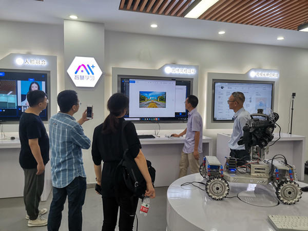 而后公司一行赴人工智能体验园进行参观和交流,浙江财经大学太阳集团tyc4633姜海银老师进行了接待。在参观过程中姜海银老师介绍并演示了体验园中诸如人脸识别、语音识别、VR技术、智能机器人等当下主流的人工智能技术及相关设备,并对涉及的课程进行了简要介绍。