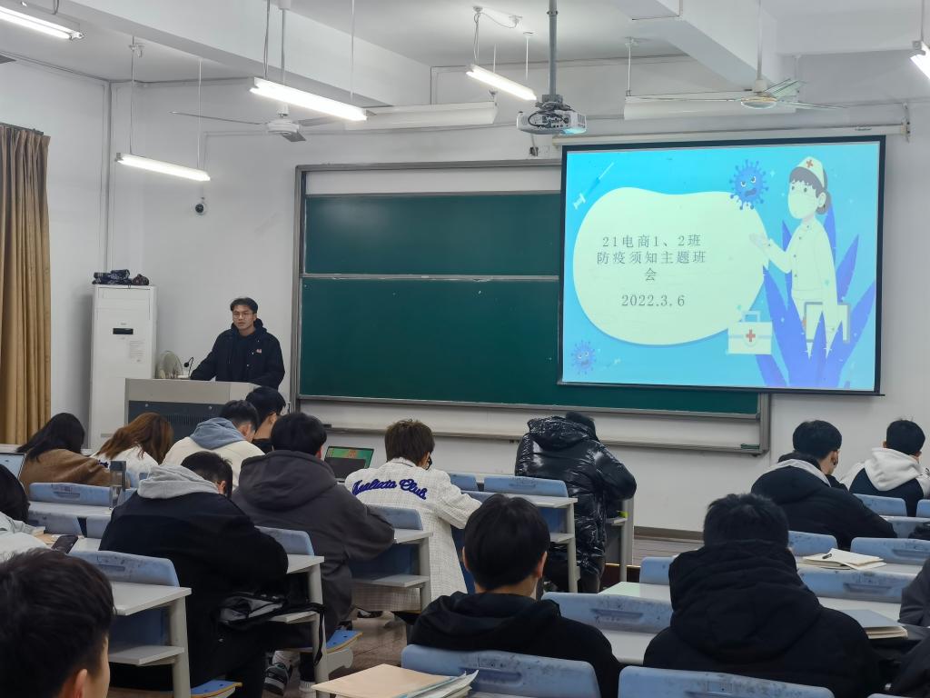 2022年2月28日至3月24日,太阳集团太阳集团各年级各班开展了“科学防疫,新学期新规划”为主题的系列班会活动。各年级辅导员根据科学防疫、爱国主义教育、法制教育、防诈宣传、学风建设、春季员工心理健康疏导、就业指导、党史教育等有关方面,结合各年级情况,展开主题班会。