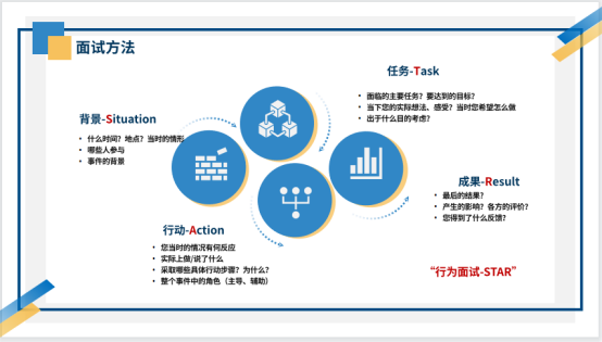 讲座上,沈婷从互联网企业招聘情况出发,分别从面试形式、面试关注点、笔试及面试常见问题、行为面试案例与总结进行辅导。首先,沈婷介绍通常公司在招聘时,有2类人群,面对应届生,公司更看重“聪明、基本功、可培养”,面对社会人(有经验者),更侧重技能与相关经验,面试形式有专业知识笔试、心理测试、综合面试、结构化复试;其次,业务与HR关注点有所不同,技术人员面试时更加看中应聘者的工作业绩及达成过程、专业知识技能、工作经历与本公司符合程度、对行业/职位的了解程度、发展潜力,而HR面试时注重应聘者的精神面貌(气质、仪表)、基本素质(自我认知、表达、沟通、反应)、个性特点及文化匹配、潜力、应聘动机、意愿度、薪资要求等等。沈婷也向同学们详细讲解了行为面试-STAR面试技巧,通过使用STAR方法——SITUATION(背景)、TASK(任务)、ACTION(行动)和RESULT(结果),四个步骤来构建每个面试问题的答案,给面试官留下好印象。最后,沈婷和大家强调STAR行为面试法需要避免的坑:1.不完成的叙述,如未说明个人具体的行为、未说明最终达到的结果、不闭环等;2.个人主观看法,如个人的信念、判断、观点;3.含糊的叙述,如侃侃而谈,但无具体说明的实际行为;4.理论性、不切实际的想法,如关于将来的设想、或打算但未做到的事情等。在交流问答环节,沈婷针对面试中常见问题,如面试礼仪(着装、倾听、小动作)、提前准备(官网、行业、岗位JD、询问HR)、有效提问(表现出意愿度,……)、方法论(复盘、PDCA、优先级)给同学们进行了详细的介绍,并一一回答了同学们提出的有关问题。