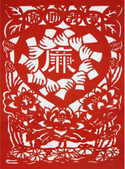 作品解读:剪纸作为非物质文化遗产优秀代表,蕴含着廉洁自律的清风正气、苦心孤诣的匠人精神。古语云,天下之本在家。家庭作为国家的最小细胞,千家万户好了,国家才能好,民族才能好。家庭是人生的第一个课堂,家是最小国,国是千万家。家庭的前途命运同国家和民族的前途命运紧密相连,家庭有清风正气,社会也是风清气正,把廉洁素材与传统剪纸相结合,作品以物喻廉,把廉洁寓于剪纸之中,通过中国传统的民间剪纸艺术弘扬廉洁文化。