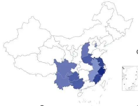 浙江385 福建26 江苏23 河南17 贵州16 广西16 四川10 云南7 山西6 安徽5 江西3 天津2
