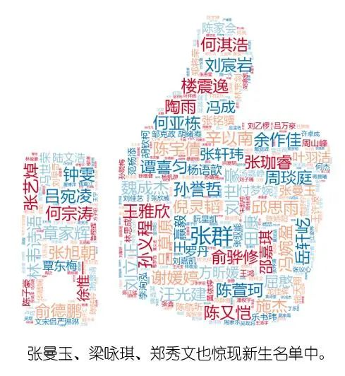 陈、王、张姓霸榜了姓氏榜,王姓36,陈姓36,张姓34,三大姓占据了新生总数的五分之一。