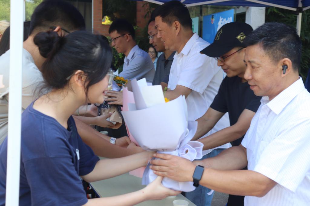 同时,公司在迎新现场举办了新生献礼的活动,新生代表们化身献花使者,给老师们敬献鲜花,送上教师节祝福!为老师们繁忙的工作日常带去一份温馨的惊喜。以期通过富有仪式感的献花活动帮助员工树立尊师重教的正确观念,增进师生情谊,凝聚师生力量。