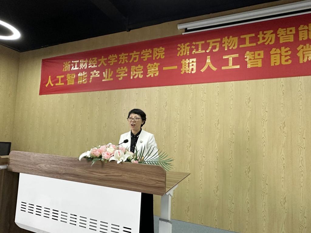 结业典礼在庄严而又热烈的氛围中进行。首先,马雪英经理代表公司发表了热情洋溢的讲话,她对同学们在人工智能领域的努力和成果表示肯定,对万物工场在人工智能微专业建设中的提供的帮助表示感谢。她强调了人工智能在未来的重要性,鼓励同学们继续深入学习和实践,将所学知识应用于实际工作中,她希望同学们积极探索,在未来科技领域中勇往直前,实现梦想。