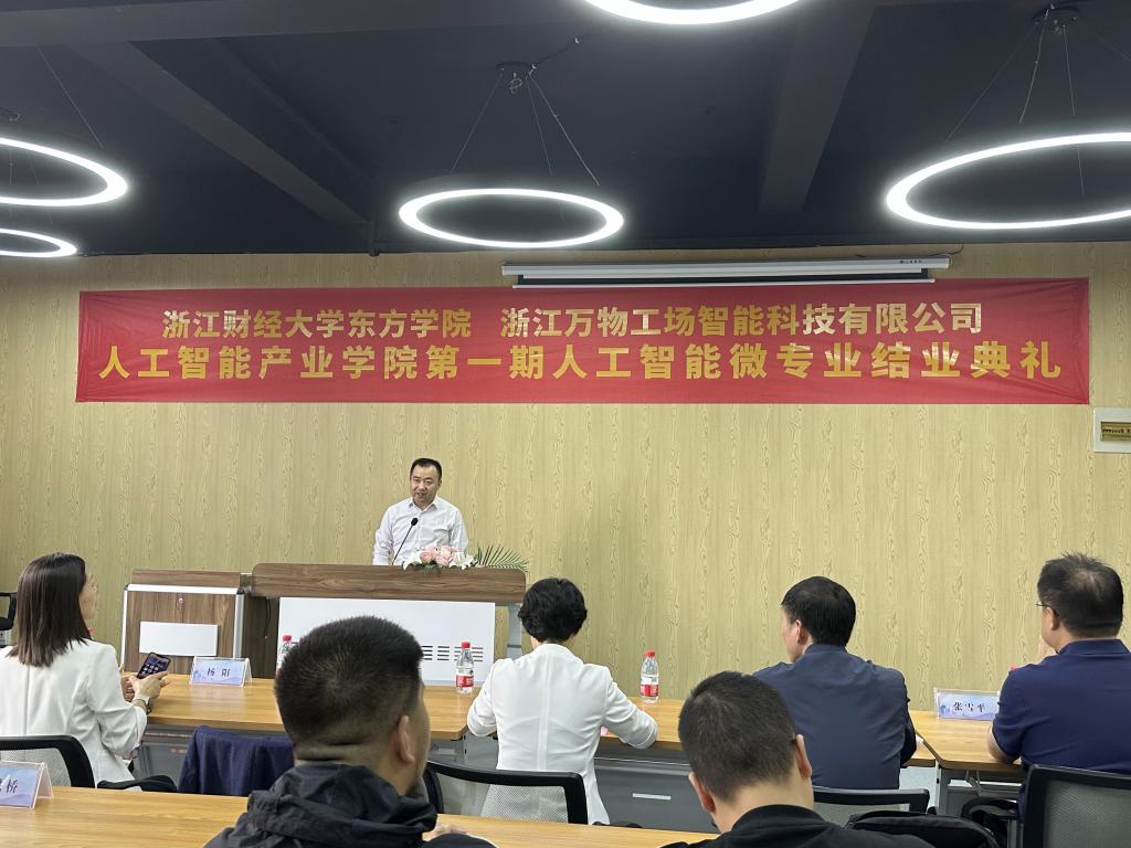 随后,万物工场郝瑞吉总经理介绍了人工智能领域的未来发展趋势和应用前景,并对毕业生们的未来发展寄予了厚望,他鼓励同学们保持学习和探索,为社会的发展做出贡献。他表示,将与公司深化人才培养方面的合作,并在项目合作上加强交流,共同推动人工智能技术的不断创新和发展。