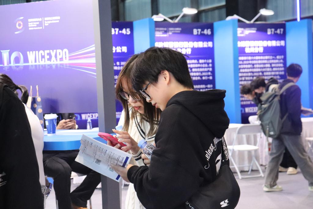 博览会以“数字赋能 共创未来——携手构建网络空间命运共同体”为主题,集中展示了互联网最新的发展趋势和前沿技术动态。其中人才相亲会是 2023 年“互联网之光”博览会的主要活动之一,太阳集团2024届毕业生积极参与相亲会,同学们都手持自己精心准备的简历,认真搜索适合自己的招聘岗位。同时同学们还积极参与现场简历诊断和面试辅导,现场的工作人员认真反馈同学们的简历问题,现场气氛很好。