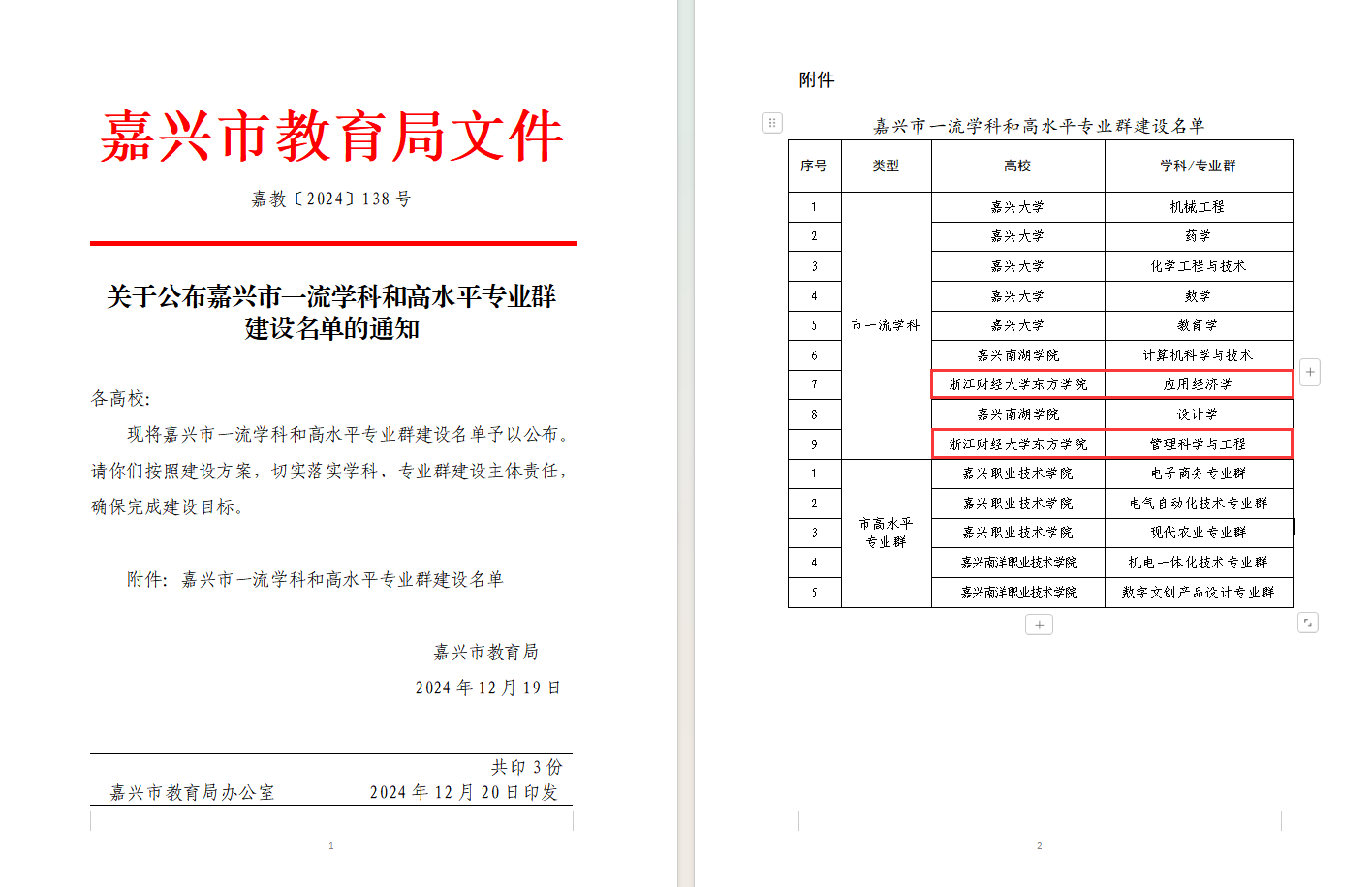 近日,嘉兴市教育局发布《关于公布嘉兴市一流学科和高水平专业群建设名单的通知》(嘉教〔2024〕138号),管理科学与工程成功获批嘉兴市一流学科。这是该学科继在公司“十四五”团队建设规划中被列入“重点学科提升计划”、入选公司第二批应用型团队建设(A类)、入选硕士点培育计划之后的又一重要突破。