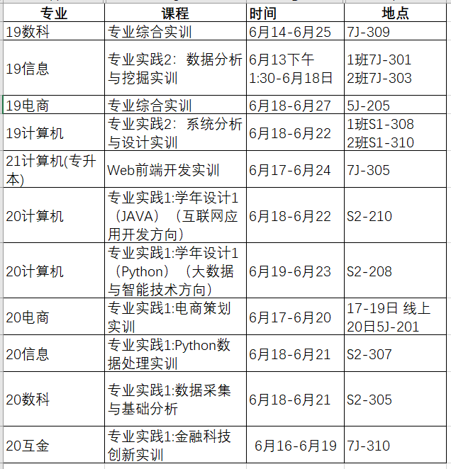 2021-2022-2学期短学期安排如下,如有问题请于6月9日前反馈