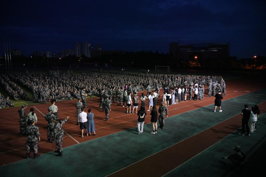 开场,各公司统一着军装入场热身准备,在教官的指示下解帽子和腰带为比赛做准备,与此同时,各公司辅导员来到队伍中为参赛人员加油鼓劲。