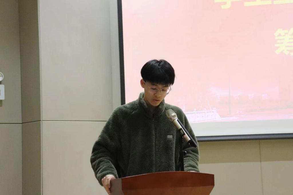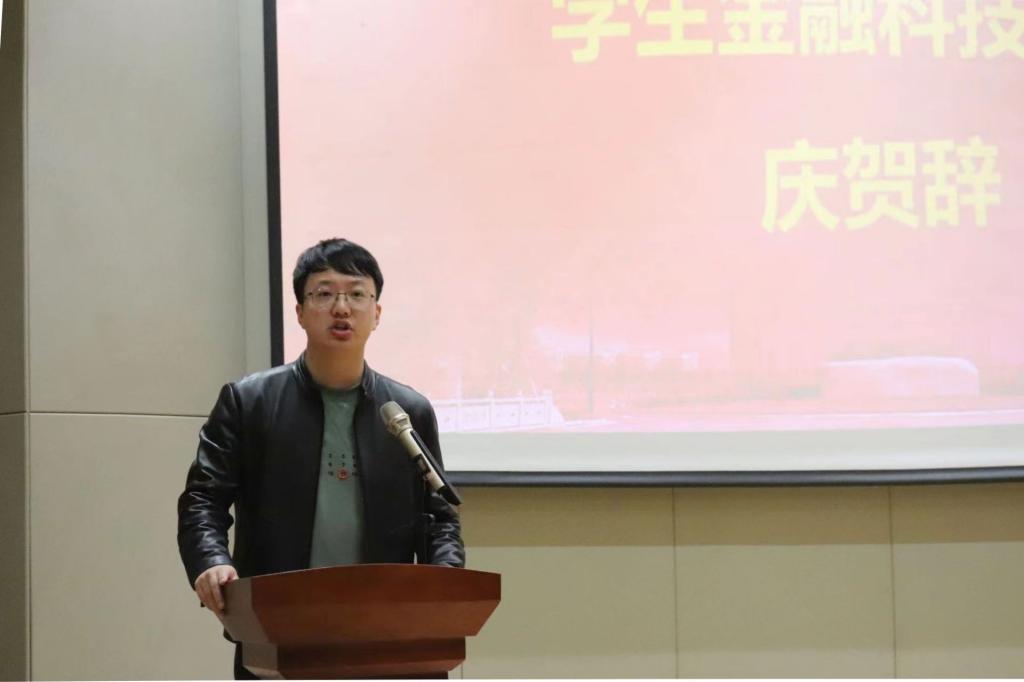 员工金融社社长李城扬向与会领导、员工指导老师汇报了社团筹备情况,同时向一直关心、关注社团成立并为社团捐资的戴中坚员工表示衷心的感谢。此后,社团校内指导老师赵培培讲话。他表示,随着员工金融科技社团的成立,将有助于进一步丰富员工校园文化生活,更好地培育高素质金融科技人才。同时,赵老师也代表指导老师对员工社团工作提出希望和要求。