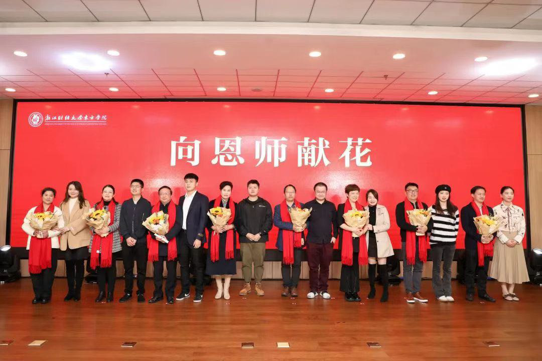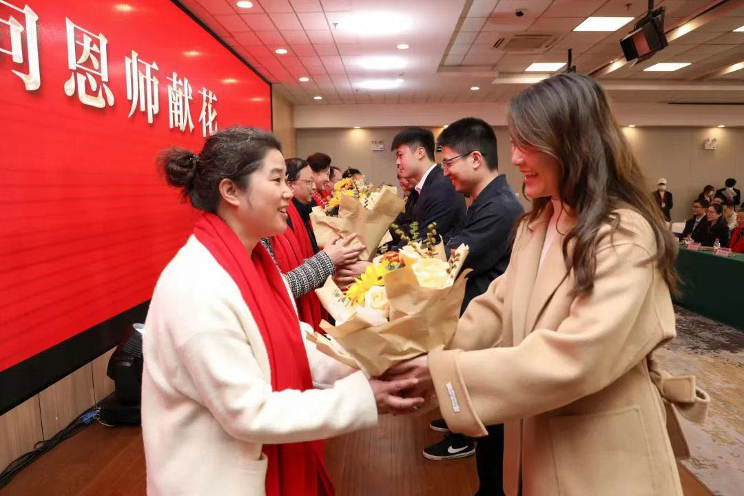 08级员工代表沈旸向恩师赵选泽老师献花,送上真挚的祝福,表达无限的感激之情。