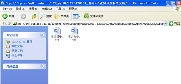 1、采用FTP上传:服务器地址:ftp://ftp.zufedfc.edu.cn(校内),用户名:xinxi_stu 密码:xinxi_stu。FTP服务器上相关目录已经建立,请各位同学严格按照文档目录结构上传。