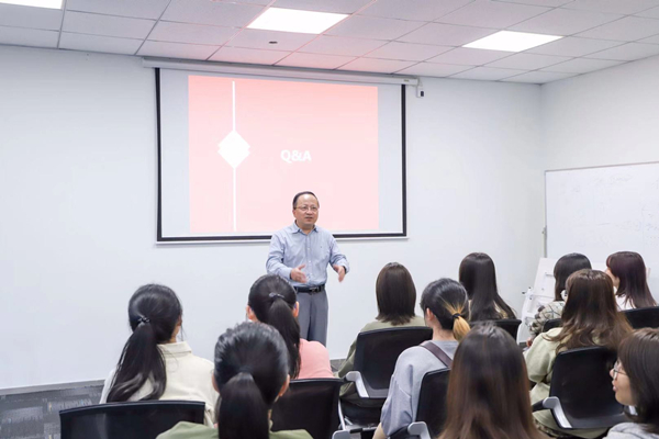 紧接着,人事部经理在公司会议室为同学们详细介绍了企业的规模、文化和发展方向,并着重介绍了公司电子商务方面相关的业务,同时为同学们解答了与实习、生活相关的一系列问题。借此机会,科技合作部陈晓阳部长为同学们详细介绍了公司毕业生的就业情况,并阐述了海宁市政府对公司能有更多毕业生留在本地就业的强烈期望。