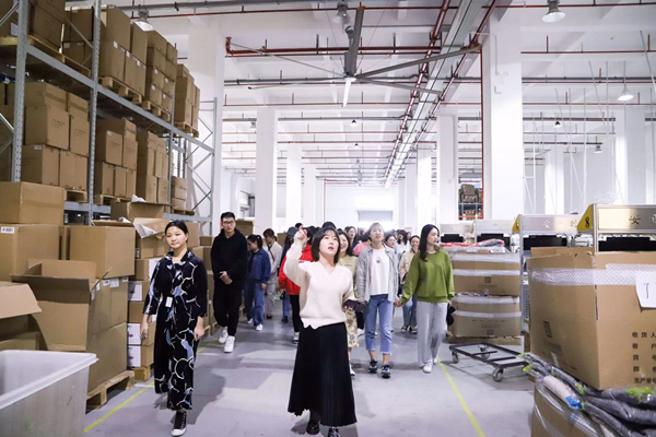 最后,同学们参观了公司的产品生产线,让同学们实地参观了产品从生产检验、分拣打包、仓储运输,再到产品的售后处理、退货检验的完整流程,让每个员工都受益良多。