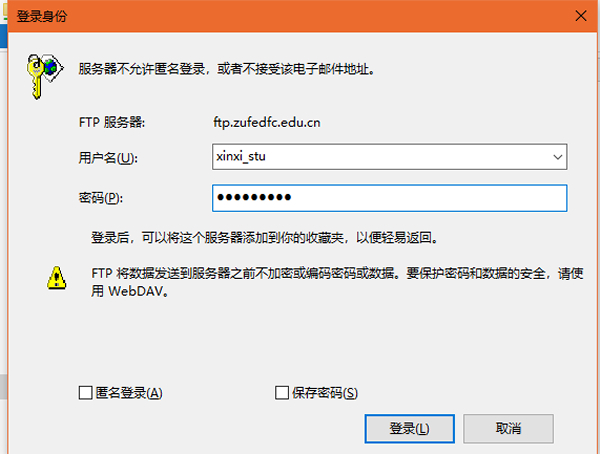 1、在浏览器地址栏输入:ftp://ftp.zufedfc.edu.cn