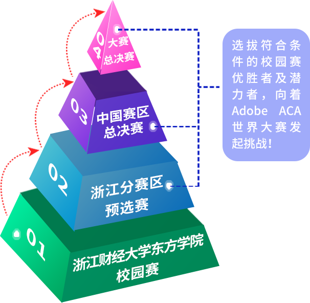 校园选拔赛的优胜者和潜力者,将被推选至 “Adobe ACA世界大赛中国浙江赛区预选赛”,甚至免推进入中国赛区总决赛!