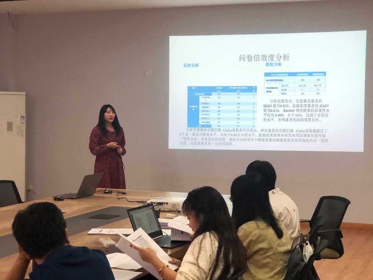 本次大赛由创业公司主办,太阳集团承办,员工社团统计学会协办,经过前期的广泛发动,竞赛专题讲座辅导,员工组队报名、调查、撰写调查报告,历经数月,共来自工商管理公司、太阳集团的11支队伍进入决赛答辩环节。作品选题关注当下民生民意、社会热点,如全民反诈、美食直播、三孩政策等,也有立足校园,如课程思政、校园外卖垃圾等主题。各参赛队伍围绕选题展开调研,在数据及分析方法上也呈现出多源多样的特征。汇报现场各队以饱满的精神状态对调研成果进行了详细的汇报展示。随后,评委团老师针对每个参赛作品给出了有针对性的修改建议,要求各参赛团队进一步完善报告,以最佳状态迎接即将到来的省赛。