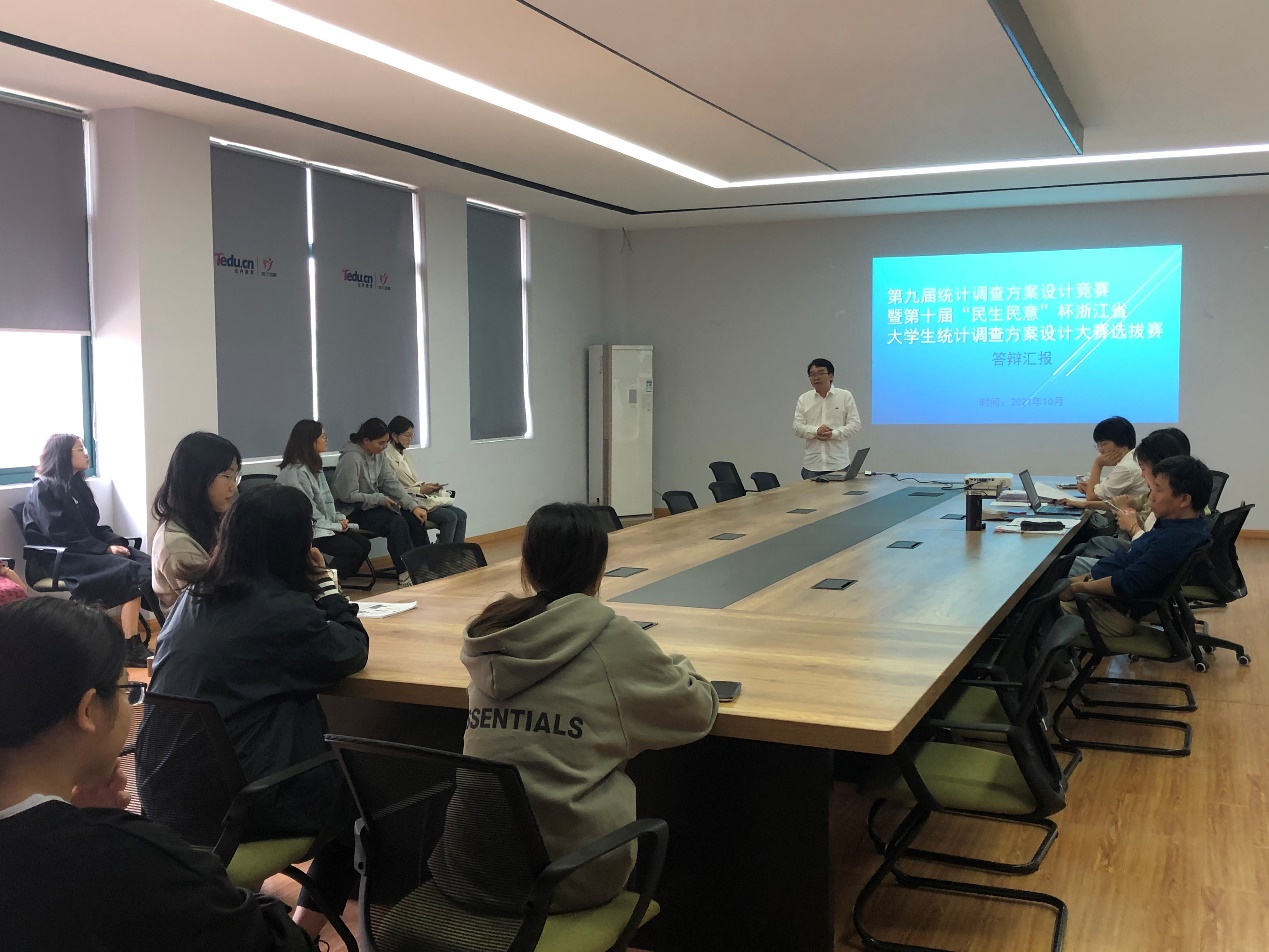10月12日下午,太阳集团第九届统计调查方案设计竞赛暨第十届浙江省老员工统计调查方案设计大赛选拔赛的校赛决赛答辩在7J304圆满结束。太阳集团彭武珍、李伟、徐朝晖、李毓君、洪倩茹、老师组成评审团指导评审。