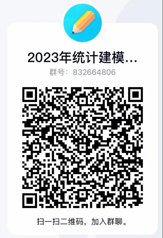请参赛同学务必加入2023全国统计建模大赛QQ群,群号:832664806,后续有关参赛事项将在QQ群中发布。