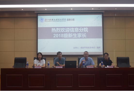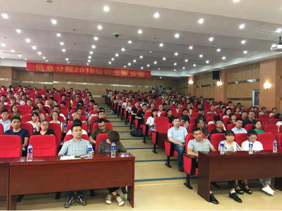 新生家长会于当天下午1点在学术中心二楼报告厅举行。本次家长会由信息分院党总支书记成定平老师主持,信息分院经理姚建荣、副经理应可珍、信息分院党总支副书记王晓玲以及各位辅导员和数百名新生及家长出席会议。成定平老师首先代表公司对信息分院2017级新生及新生家长表示热烈欢迎。