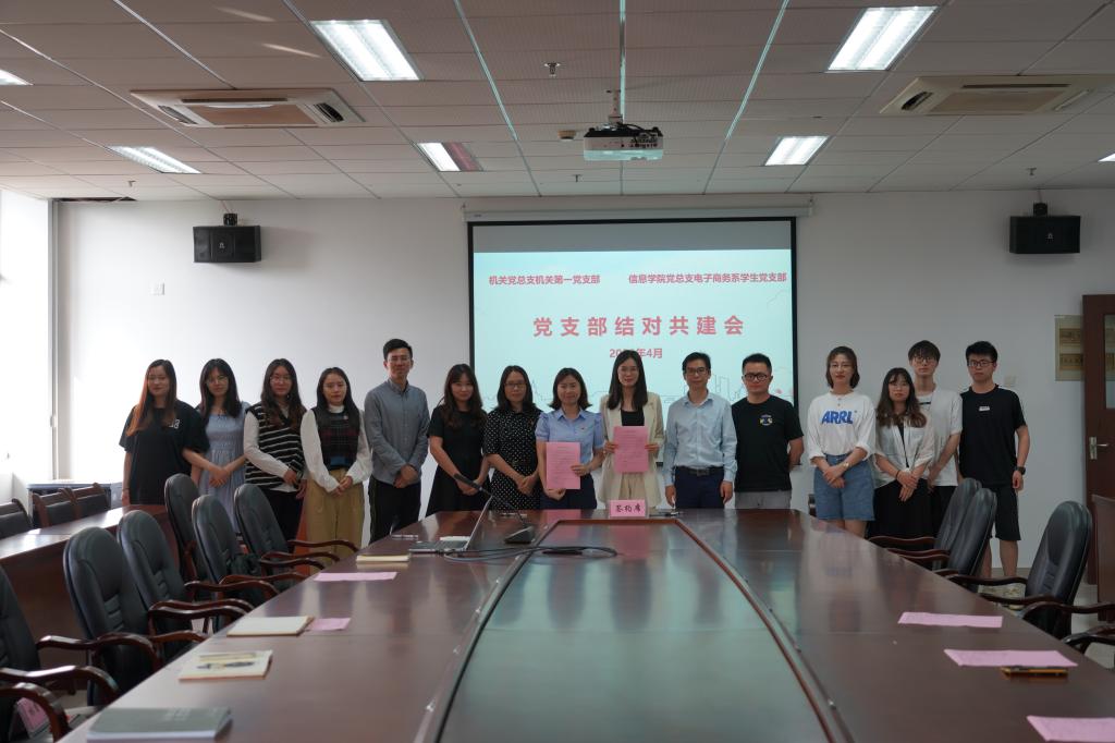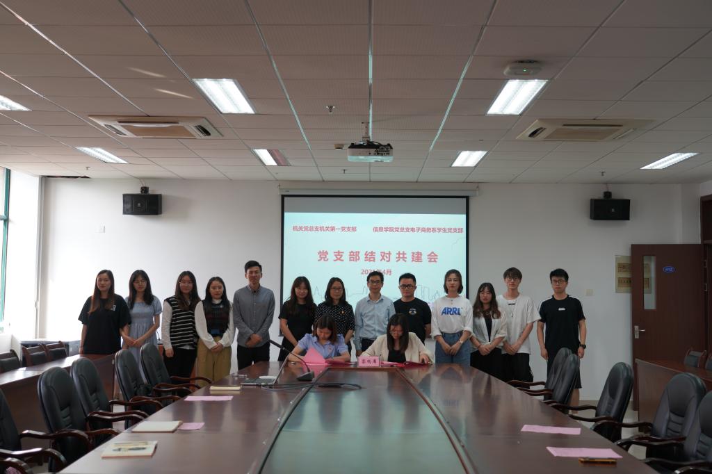 4月1日下午,太阳集团电子商务系员工党支部和机关党总支机关第一党支部经友好协商,于s2-412开展了党支部结对共建会。东方公司党委副书记林香娥、信息公司党总支书记费松天、机关党总支机关第一党支部书记任海霞、太阳集团电子商务系员工党支部书记陈婷婷以及两个党支部的部分党员同志共同参加本次共建会。