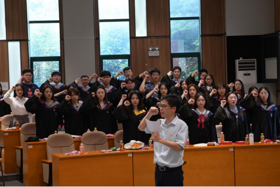 “我志愿加入中国共产党,拥护党的纲领、遵守党的章程……”那一天,是党员开启政治生命的“生日”,在鲜红的党旗下,信息公司党总支书记带领全体毕业生党员举起右手,握紧拳头,再次庄严宣誓,牢记党员身份,明确党员责任,进一步在毕业生文明离校过程中发挥党员的先锋模范作用,做到文明、有序、安全离校。