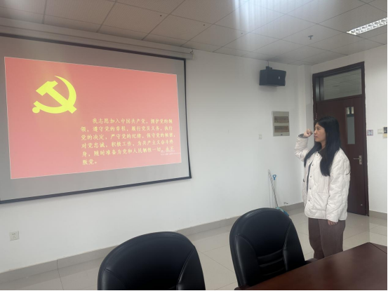 入党介绍人介绍了宋怡君同志在思想、工作、学习等方面的表现,对该同志在培养期的各项表现进行了客观、准确的评价,表明了同意宋怡君同志入党的态度。党支部书记应芳琴代表支委会向大会报告发展对象的政治审查情况,并向大会汇报征求党员和群众意见,与会党员就发展对象能否入党发表意见,大家一致认为宋怡君同志在思想上积极向党组织靠拢,具备了共产党员应有的政治素质和道德品质,符合党组织的要求。经过充分讨论,正式党员进行了无记名投票表决,一致同意接收该同志为中共预备党员,并在支部书记带领下进行入党宣誓。