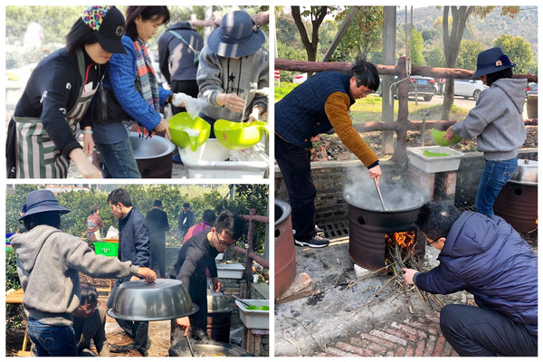 3月24日上午,信息分院一行人抵达位于海宁市黄湾镇尖山村的灵芝园农家乐,这里山清水秀、空气清新、景色分外宜人。当地别具特色的项目就是做野饭,使用店家提供的野炊灶具,大家撸起袖子,亲自为午餐“奋战”。生火、煮野饭、炖土鸡、摆餐盘……所有工序都在老师们的相互配合中有条不紊地进行。掌勺的老师们一展大厨风范,不一会的功夫就呈现了一桌桌喷香的野味。俗话说,自己动手、丰衣足食,面对自己的劳动成果,每位老师都吃得异常满足。