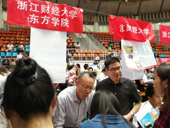 2018年6月23日,公司信息分院派出成定平老师和包轶老师前赴嘉兴公司参加招生咨询工作,旨在帮助嘉兴地区的考生及家长提供志愿填报、招生咨询方面的工作,同时宣传东方公司和信息分院。当天早上公司党委副书记张淼书记和员工工作部部长方志勇部长也前往现场进行招生咨询指导。