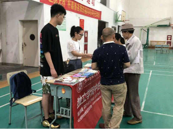此次招生咨询工作在嘉善高级中学室内运动馆举办,来自省内和部分省外高校齐聚一堂,方便了考生和高校一对一交流咨询,上午八点左右,已有家长带领员工到场馆内咨询,公司王硕老师和员工朱宇凡耐心细致地对考生和家长提出的疑问和其他问题进行了一一解答,现场咨询氛围浓厚,热闹非凡。