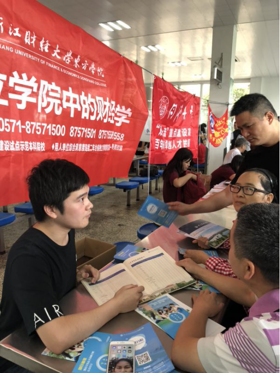 6月24日8点,桐乡高级中学举行了高考总结会议,全体高三员工以及家长均参加了本次会议,借此契机,公司老师在桐高校园里,积极向员工发放东方公司和信息分院的宣传资料,随后公司老师来到咨询会场地(桐高食堂)向前来咨询的员工及家长讲解公司的现状和招生政策:公司“0门槛”转专业、专业特色、创新创业以及就业满意度等。